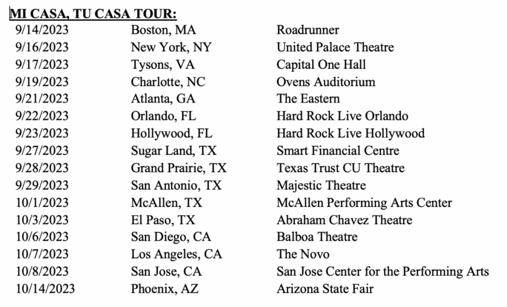 Los boletos y paquetes VIP para la MI CASA, TU CASA TOUR, patrocinada por PATRON y Cheetos, saldrán a la venta el 12 de mayo a las 10 AM hora local en www.iambeckyg.com. Las preventas comienzan el martes, 9 de mayo a las 10 AM hora local.