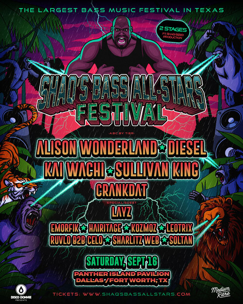 Uniting the bass music community around the globe and taking the game plan into his own hands as we ring in the festival season, DIESEL (aka SHAQ) is taking his touring live event series Shaq’s ‘Bass All Stars’ to the next level with his first large-scale bass music festival: “Shaq’s Bass All Stars Festival.” In need of your bass and dubstep fix? Well, look no further as the largest bass music festival in Texas will take place on Saturday, Sept 16 which will welcome over 10,000 fans to Panther Island in Fort Worth, Texas, just outside of Dallas. With a stellar lineup personally curated by SHAQ himself, the festival will feature more than 15 of SHAQ’s chosen All-Stars including Alison Wonderland, Sullivan King, Kai Wachi, Crankdat, and many more across two stages.