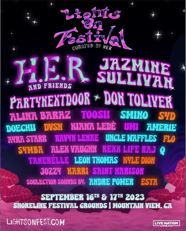 “Estoy tan emocionada de que ‘Lights On Fest’ regrese”, dijo H.E.R. dice: “Es mi forma favorita de terminar el verano teniendo dos días llenos de excelente música R&B. ¡Estoy muy orgulloso de revelar el extraordinario talento que tenemos en el cartel de este año y no puedo esperar a que todos vean lo que está por venir!
