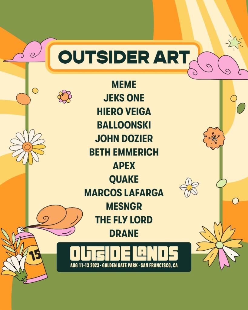 Hoy, Outside Lands anunció su alineación para Outsider Art presentado por Monster Energy, que regresará al festival este año en el Golden Gate Park de San Francisco, del 11 al 13 de agosto. Con instalaciones de algunos de los nombres más importantes del Área de la Bahía y más allá, la programación de este año incluye: Meme, Jeks One, Beth Emmerich, Apex, Quake, The Fly Lord y más.
