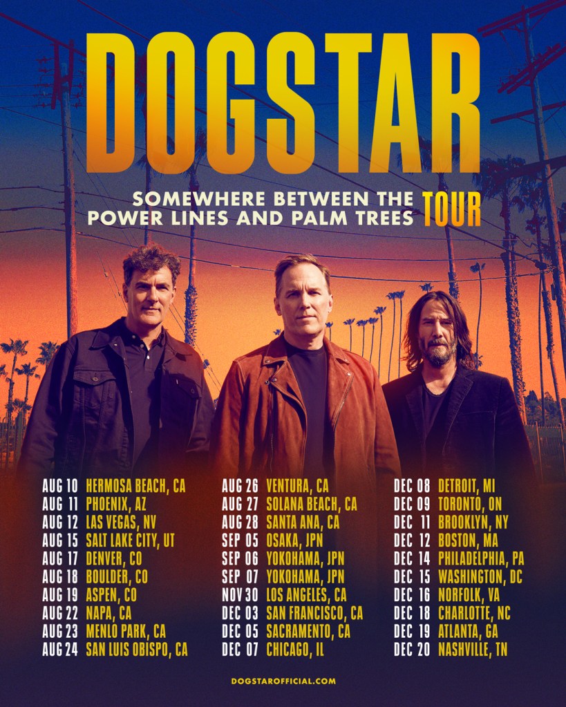 La demanda de Dogstar para 25+ City Headline Somewhere Between the Power Lines and Palm Trees Tour con entradas agotadas, que comenzó ayer con una emocionante actuación en Saint Rocke en Hermosa Beach, fue abrumadora ya que se agotaron las entradas para la gira el primer día de venta de entradas. La gira continúa con Phoenix esta noche y luego una serie de fechas en la costa oeste en ciudades como Las Vegas, Salt Lake City y Denver hasta fin de mes, antes de llevar su show en vivo al extranjero durante tres fechas en Japón a principios de septiembre. Reanudarán sus fechas en América del Norte en diciembre en ciudades como Chicago, Toronto, Nueva York, Boston, Filadelfia, DC y Atlanta antes de concluir el 20 de diciembre en Nashville, TN.