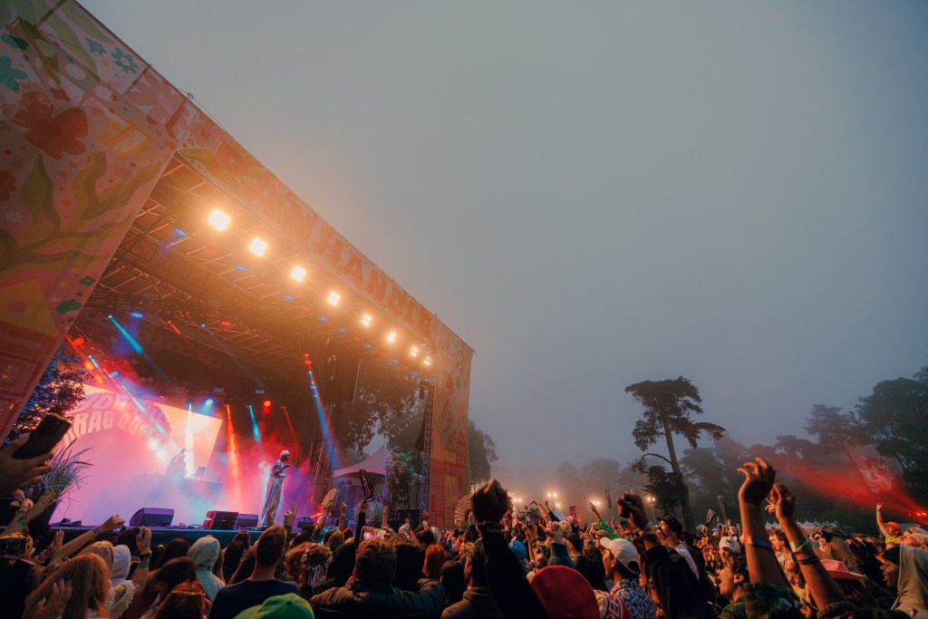 En su decimoquinto año, la mayoría de los aproximadamente 75 000 asistentes de Outside Lands se sintieron más jóvenes y más inquietos que nunca, compitiendo entre seis etapas con vapeadores en la mano y muy poca ropa para protegerse del viento y la niebla implacables.
