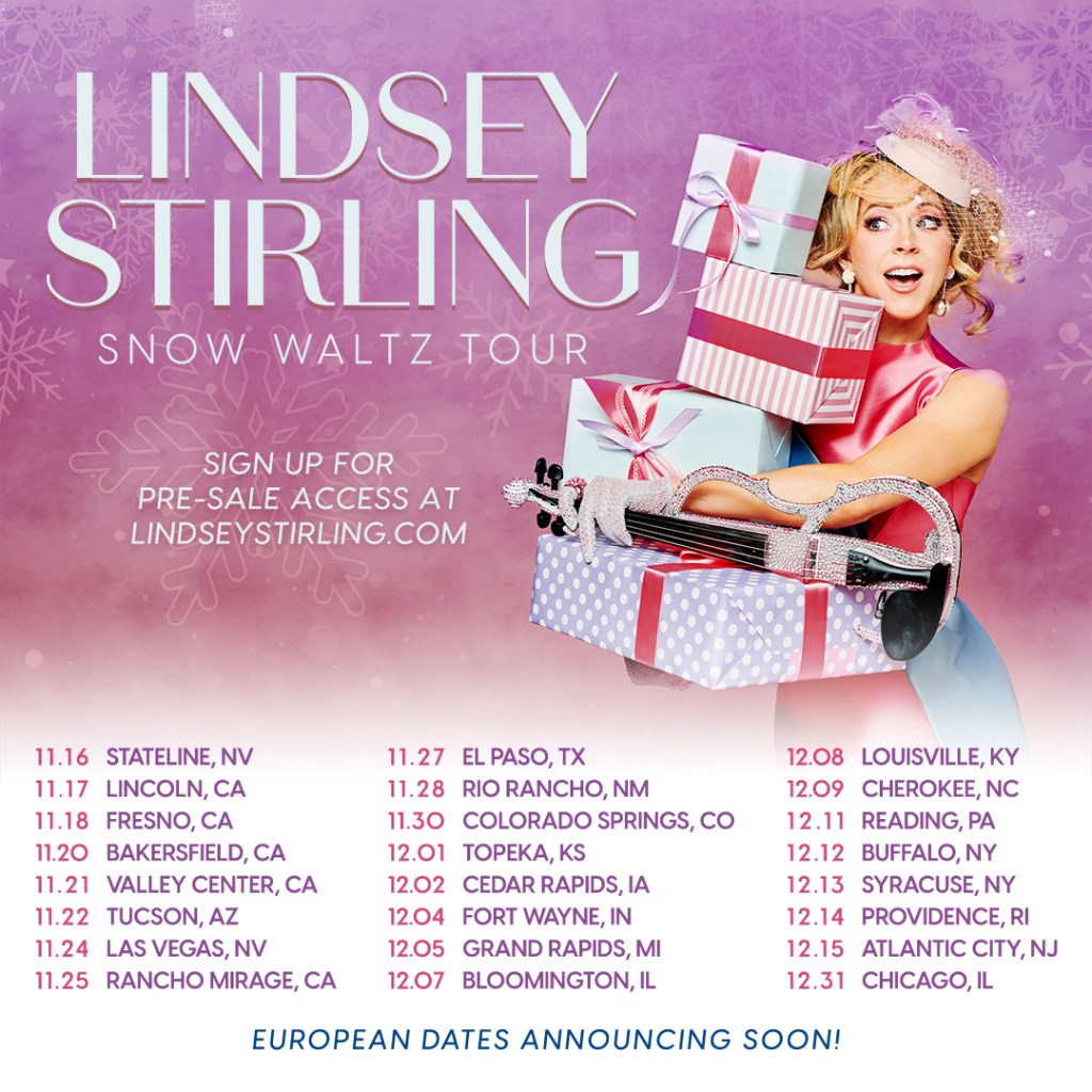 Today, electronic violinist, dancer, and artist Lindsey Stirling announces her North American Snow Waltz 2023 tour, set to kick off in Stateline, Nevada on November 16th and end in Chicago, Illinois on December 31st. In support of her incredibly successful album, Snow Waltz, Lindsey will be embarking on a journey across the United States, hitting 20+ cities, performing in El Paso, Las Vegas, Atlantic City, and more. See full tour routing below.