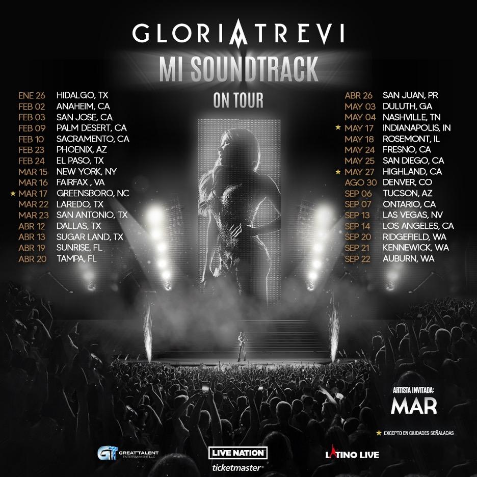 With an avant-garde and elegant show, Trevi will showcase her evolution through new versions of her iconic classics and new original tracks that represent the different moments of her life. The concept of the tour was inspired by the release of Trevi’s soundtrack to life, “Mi Soundtrack” (Vol. 1 and Vol. Two), a compilation of newly recorded versions of her classic hits “Pelo Suelto,” “Dr. Psiquiatra” and “Con los Ojos Cerrados,” among others, and will give life to newly released tracks like “Medusa,” “Que Se Acabe El Mundo” and “Siempre Yo”, among others. “She is without a doubt, Gloria Trevi. An artist in constant timeless evolution, and I want to share it with the audience that has always followed and supported me unconditionally, and with their eyes closed throughout the years,” said Gloria Trevi, who assures it will be a modern tour. In addition, advocating for new and emerging talent as she previously did for Colombian star Karol G, Trevi has tapped MAR Solis as the opening act for multiple shows on the first leg of the tour.