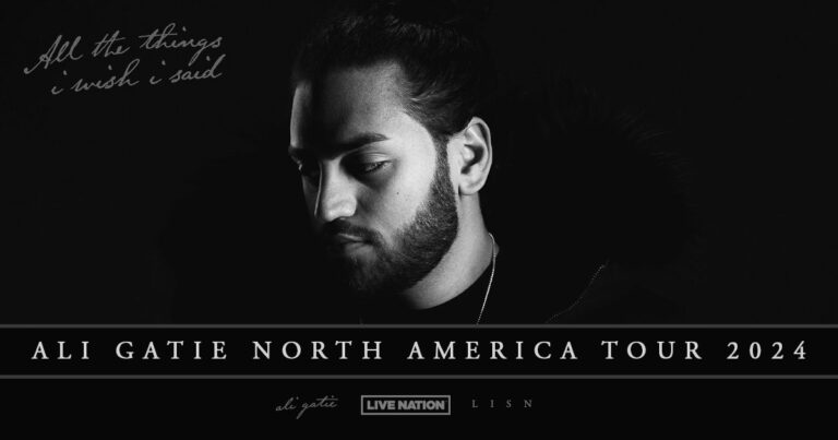 Today, multi-platinum Canadian singer Ali Gatie announced his 2024 ‘All The Things I Wish I Said Tour.’ Produced by Live Nation, the 21-date global run kicks off on Friday Jan 26 — Detroit, MI — Saint Andrews Hall, with stops across North America, Europe and the UK in Toronto, Montreal, Brooklyn, Los Angeles, Brussels, Berlin, Amsterdam and more before wrapping up on Sunday, April 21 in London at Earth Hall.