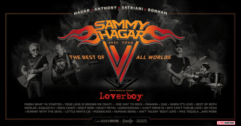 Rock & Roll Hall of Famer SAMMY HAGAR today announced the long-awaited “THE BEST OF ALL WORLD’S” 2024 tour. Hagar will be joined by rock heavyweights and longtime bandmates MICHAEL ANTHONY (bass, backing vocals), JASON BONHAM (drums) and revealed exclusively on SiriusXM’s The Howard Stern Show this morning that JOE SATRIANI, one of the best guitar players in the world, will complete the band. Produced by Live Nation and featuring special guests Loverboy, the 28-date tour will commence on July 13 in West Palm Beach, FL and will conclude on August 31 in St. Louis, MO. Pre-sales begin on Wednesday, November 15 at 10 am. General on-sale begins Friday, November 17 at 10am local. For tickets and more details, go to RedRocker.com.