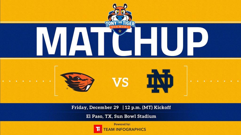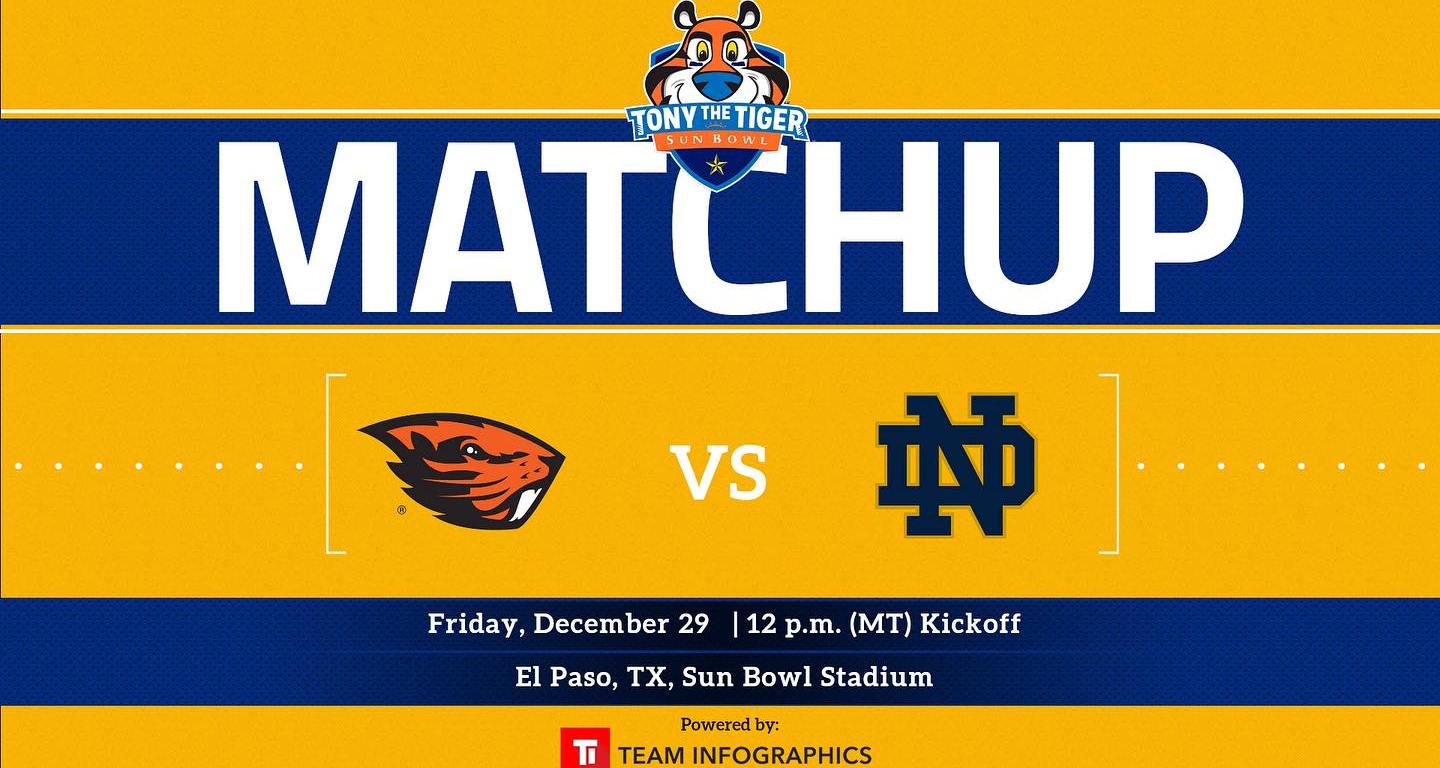 Los Notre Dame Fighting Irish han sido anunciados como los oponentes de Oregon State en la 90va edición del Tony the Tiger Sun Bowl este viernes, 29 de diciembre 2023. La última vez que los irlandeses vinieron al Sun City fue para el Sun Bowl en 2010, contra los Miami Hurricanes.