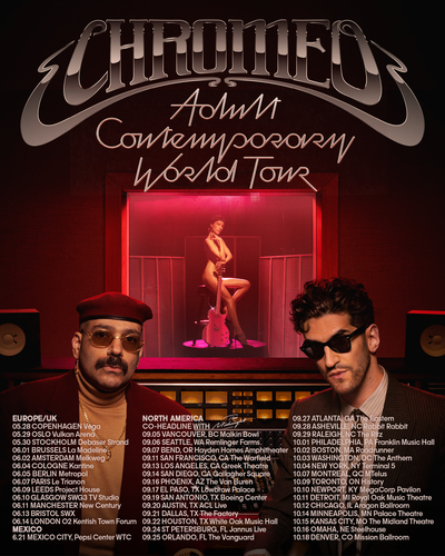Para celebrar la nueva música, Chromeo se embarcará en una muy esperada gira internacional esta primavera, que incluirá fechas en Londres, París, Berlín, Escandinavia y Ciudad de México. A esto le seguirá una extensa gira por América del Norte con The Midnight este otoño, denominada gira “Chrome Nights”, que incluirá presentaciones en la Terminal 5 de Nueva York, el Teatro Griego de Los Ángeles, el Aragon Ballroom de Chicago y más. Consulte a continuación el itinerario completo del recorrido y compre boletos aquí.