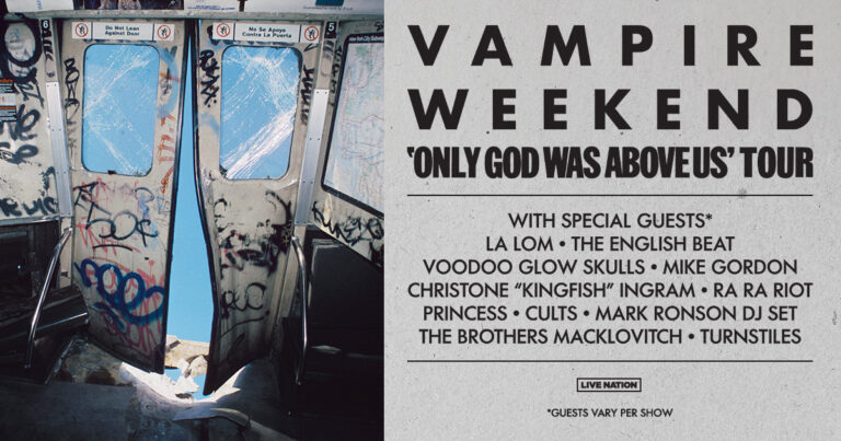 Los actos de apoyo para la próxima gira de Vampire Weekend han sido cuidadosamente seleccionados y seleccionados por Koenig, Baio y Tomson. Cada región del país contará con sus propios invitados muy especiales, varios de los cuales tienen importancia local y todos ellos queridos por la banda. Esos invitados incluyen: LA LOM, The English Beat, Voodoo Glow Skulls, Mike Gordon, Christone “Kingfish” Ingram, Ra Ra Riot, Princess con Maya Rudolph y Gretchen Lieberum, Cults, un DJ Set de Mark Ronson, Turnstiles y The Brothers Macklovitch. . Consulte el cartel de la gira para obtener más información sobre qué actos aparecerán en qué fechas.