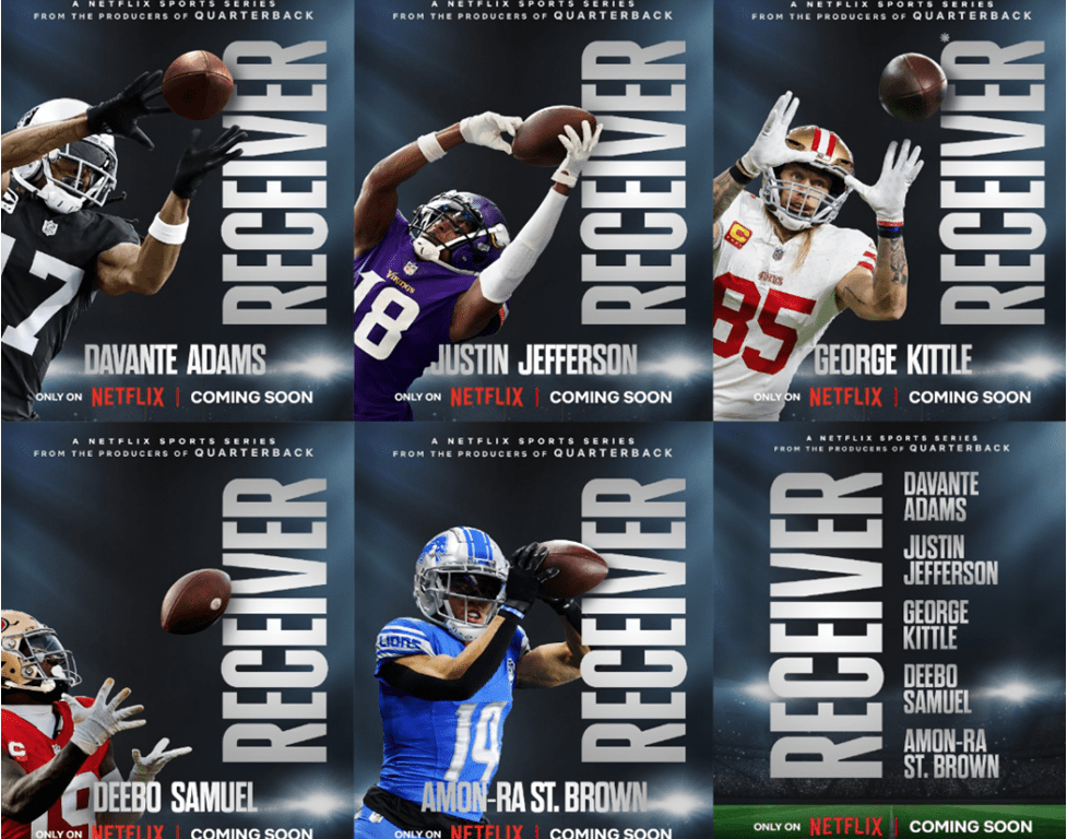Hoy, Netflix anunció su nueva serie deportiva “Receiver” que sigue a los receptores de pases para la temporada 2023 de la NFL: Davante Adams (Las Vegas Raiders), Justin Jefferson (Minnesota Vikings), George Kittle (San Francisco 49ers), Deebo Samuel (San Francisco 49ers). ) y Amon-Ra St. Brown (Leones de Detroit).