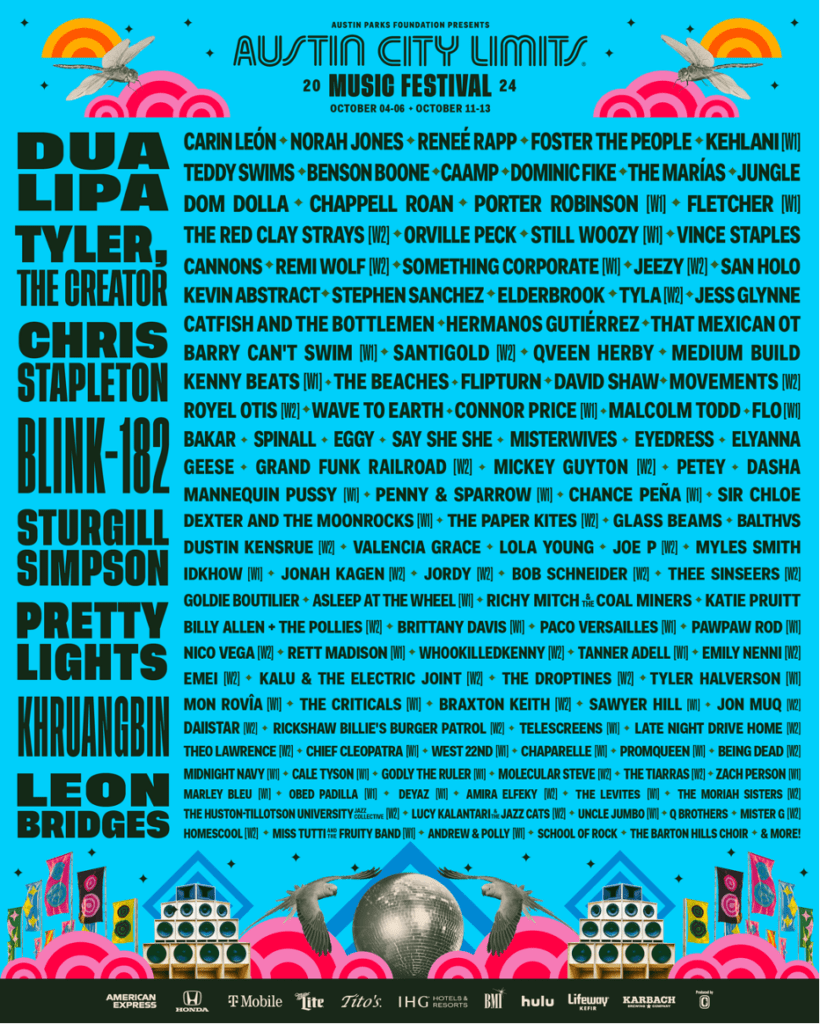 Austin City Limits Music Festival 2024 agradece a American Express, Honda, T-Mobile, Miller Lite, Tito’s Handmade Vodka, IHG® Hotels & Resorts, BMI, Hulu, Lifeway Kefir y Karbach Brewing Co.