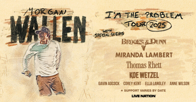 Tras el éxito de One Night At A Time, que se convirtió en la gira de música country más vendida de la historia —recibiendo dos nominaciones en los 36th Annual Pollstar Awards como Gira Principal del Año y Gira Country del Año, tocando frente a más de 3 millones de fans en 87 shows en 10 países—, Morgan Wallen está reescribiendo su lista de canciones mientras revela el título de su cuarto álbum de estudio: I’m The Problem. Este esperado proyecto impulsa la gira de 2025 I’m The Problem Tour, con 10 ciudades y 19 conciertos en estadios, producida por Live Nation.