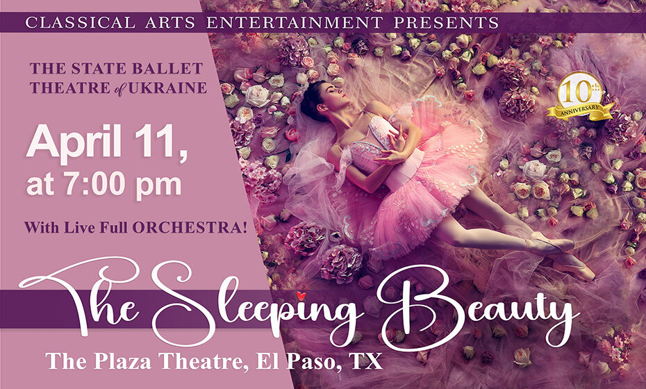 ¡Vive el encantador cuento de La Bella Durmiente presentado por Classical Arts Entertainment, con la participación de un elenco mundialmente reconocido de 55 de las estrellas más brillantes del Teatro Estatal de Ballet de Ucrania!