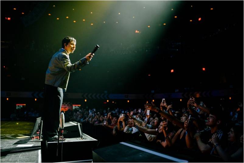 Con un escenario cuidadosamente diseñado para resaltar la estética melancólica de sus canciones, Iván arrancó el show con una ovación ensordecedora al interpretar uno de sus temas más emblemáticos, “Está Dañada”. El público, compuesto en su mayoría por jóvenes que coreaban cada palabra, convirtió el recinto en un coro masivo de corazones rotos.