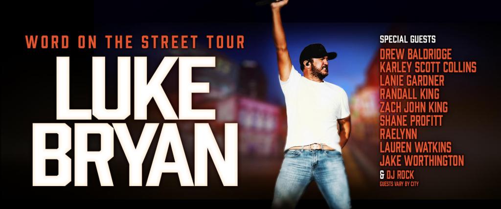 Luke Bryan, quien recientemente se ubicó en el Top 20 de la lista Pollstar Artists of the Millennium gracias a la venta de boletos, dará inicio a su gira “Word On The Street Tour” con dos conciertos consecutivos los días 29 y 30 de mayo en Gilford, New Hampshire. Luke fue uno de los únicos dos artistas de country en entrar al Top 20 de Pollstar, tras haber vendido más de 20 millones de boletos para conciertos a lo largo de su carrera.