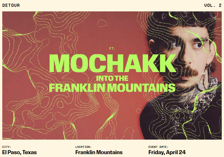 El concepto Detour es creado por J&K Present, promotora local reconocida por traer propuestas innovadoras y artistas de alto perfil a la región fronteriza. La idea detrás de esta serie es clara: convertir espacios emblemáticos de la ciudad en experiencias inmersivas de un solo día, donde el entorno no es solo un fondo, sino parte esencial del espectáculo. No se trata únicamente de un concierto, sino de una producción cuidadosamente curada que combina sonido, ubicación y comunidad.