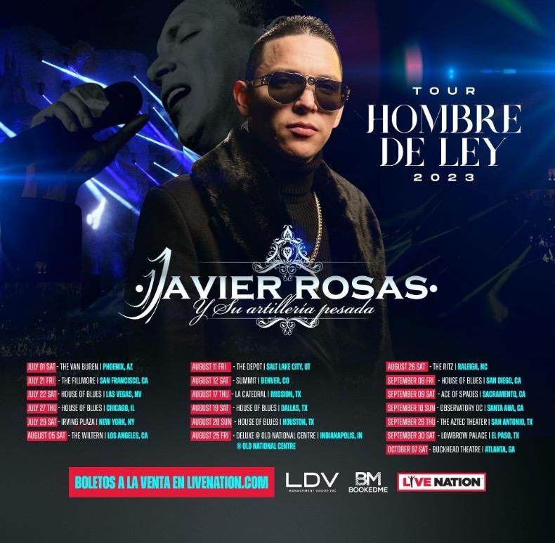 Javier Rosas, the Sonoran singer-songwriter and star of regional Mexican music, announces his upcoming Hombre De Ley U.S. 2023 Tour. Produced by Live Nation, LDV Management Group, and BOOKEDME, the 19-city tour kicks off on Saturday, July 1 at The Van Buren in Phoenix, making stops across the U.S. in Las Vegas, Chicago, New York, and more before wrapping up in Atlanta at Buckhead Theater on Saturday, October 7. The … Continue reading Javier Rosas announces his upcoming 2023 North American “Hombre De Ley” Tour