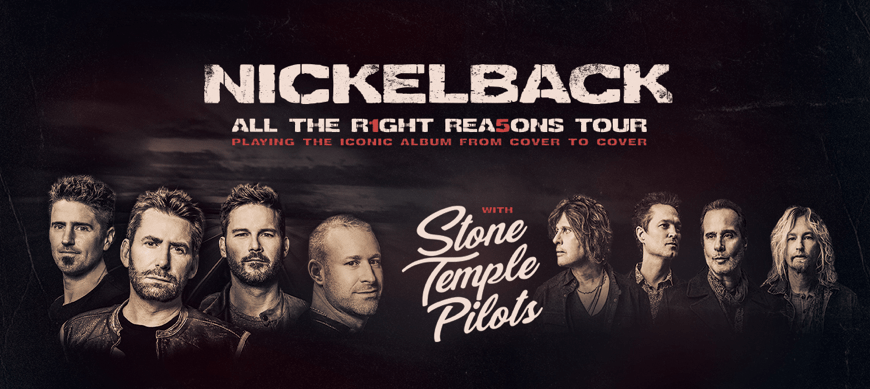 NICKELBACK ANNOUNCES “ALL THE RIGHT REASONS 2020” SUMMER TOUR TO CELEBRATE 15th ANNIVERSARY OF DIAMOND CERTIFIED ALBUM Band to Perform #1 Album In Its Entirety With Special Guests Stone Temple Pilots and Switchfoot Friday, October 2 Toyota Amphitheatre Wheatland, CA Saturday, October 3 Shoreline Amphitheatre Mountain View, CA Tickets On Sale Thursday, January 23 at 10am at LiveNation.com . San Francisco, CA (January 21, 2020) – … Continue reading Nickelback Announces All The Right Reasons 15th Anniversary Tour in Northern California